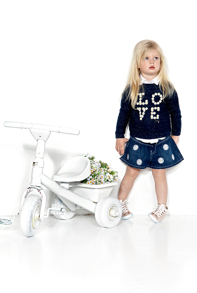 Детская мода для девочек в коллекции весна-лето 2016 от Little Remix продолжает тренд тандемного лука мамы и дочки. Поэтому в коллекции этой марки мы находим множество аллюзий взрослой одежды. Платья свободного кроя с рукавом ¾, вещи размера over size, куртки и пуловеры – в общем, все то, что за комфорт и лоск уже оценила мама, пора примерять на дочь. Юные копии взрослых барышень выглядят очень трогательно, да и какой девочке не польстит, что она одета как мама?