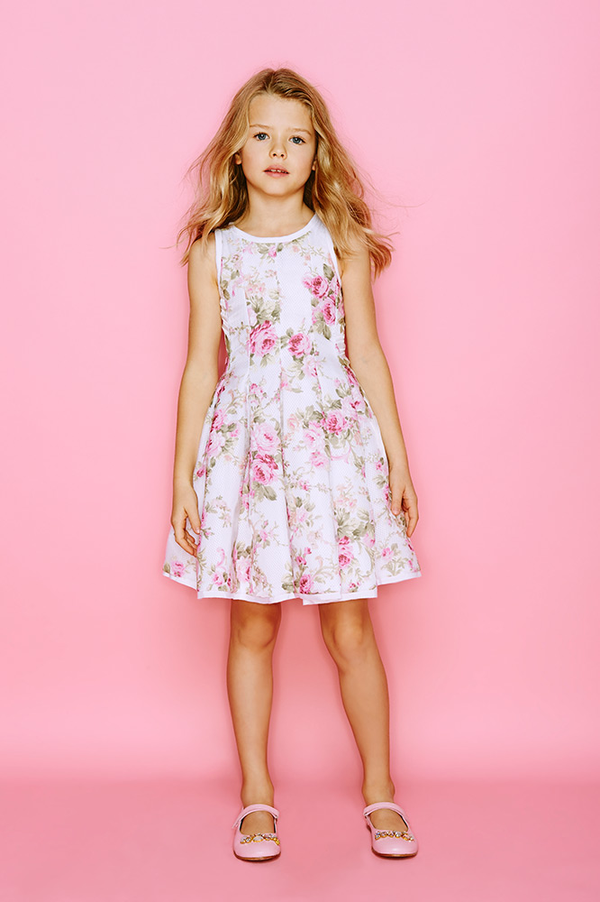 В новой коллекции типичный образ бренда сохранен, цветочные рисунки выполнены чаще всего на белом фоне, в юбочки едва открывают коленки. В общем, одевайтесь, юная фея…
