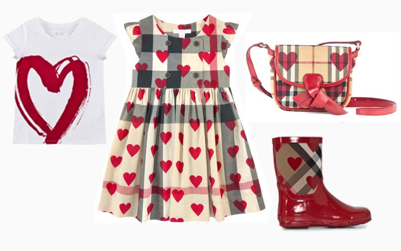 Классическая клетка в новой коллекции этой марки для детей разбавлена узорами и орнаментами из сердечек. На вещах для девочек они присутствуют повсеместно, даже на сумочках и резиновых сапожках.