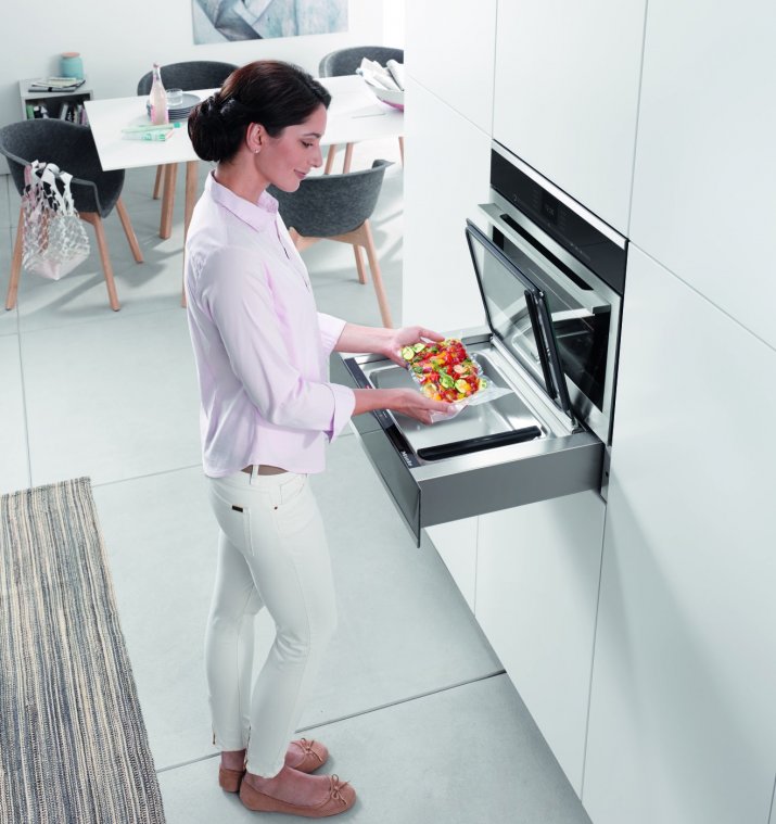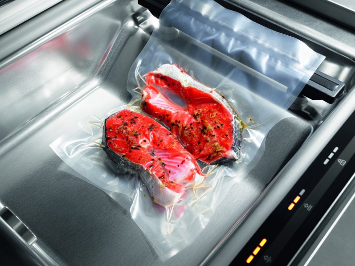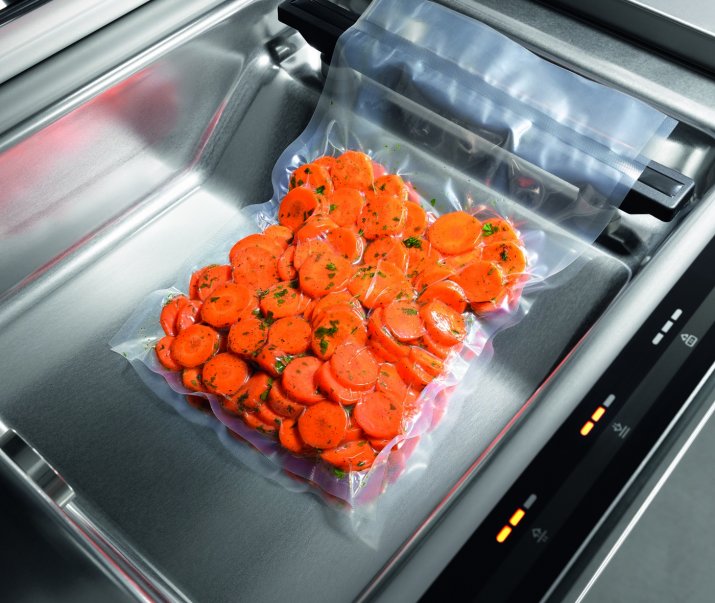 А еще здесь нам рассказали о том, что все большую популряность приобретает режим приготовления «сувид» – приготовление продукта в вакууме. Так сохраняется вся нежность и сочность, улучшается вкус, не образуется корочки.