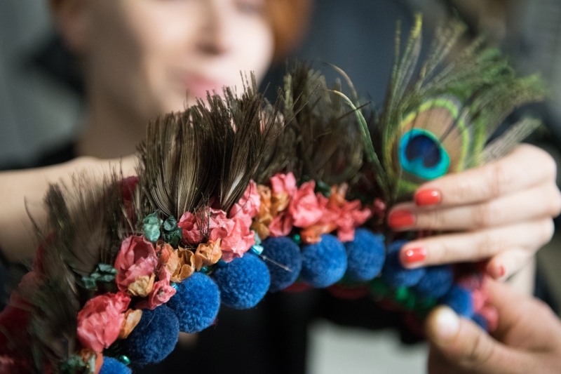 - Венок с павлиньими перьями для Соломии Витвицкой доделывали прямо на площадке, так что известная ведущая чуть не опоздала на эфир, но успела сделать сэлфи с Ольгой Фреймут.