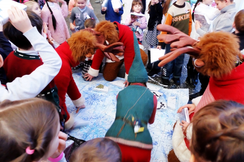 Хотя, слово «представление» для этого шоу не совсем подходит. Ведь не жди, что малышей рассадят по креслам в ряд, и артисты перед ними будут давать спектакль. Здесь все не так, а потому гораздо интереснее. «Врятуй новорічне свято» – это интерактивная сказка, и ребенку ее представляют актеры-аниматоры, которые вовлекают его в сюжет, делая главным героем всех приключений. Вот почему малыши приходят в восторг от этого шоу.
