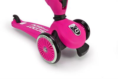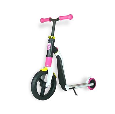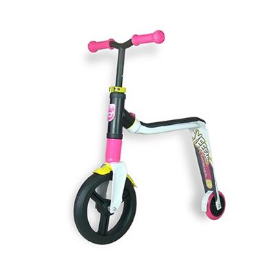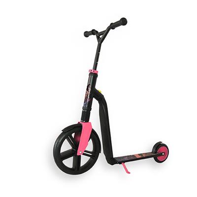 А в остальном – все очень похоже на предыдущую модель – то же нескользящее покрытие платформы, те же эргономичные ручки, тот же способ превращения из беговела в самокат и наоборот. Выпускается в четырех цветовых решениях: красном, розовом, зеленом и синем.