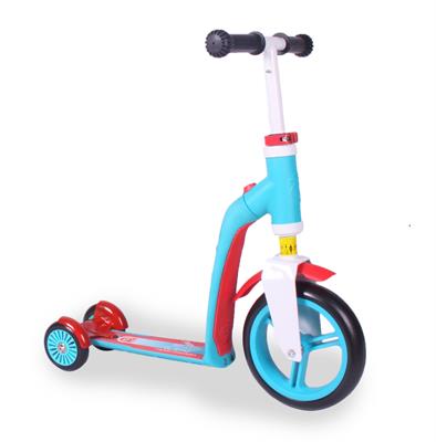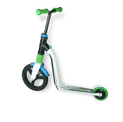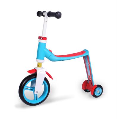 То есть данный самокат подойдет для подростка и не очень высокого и не слишком полного взрослого. Рама изготовлена из сверхпрочного алюминиевого сплава и стали, платформа имеет нескользящее покрытие, ручки – эргономичную форму, тормоз расположен на заднем колесе. Способ превращения из самоката в беговел и назад – тот же, что и у предыдущих моделей. Вариантов расцветок 4: бело-зелено-синий, бело-красный, бело-сине-оранжевый и черно-розово-синий.