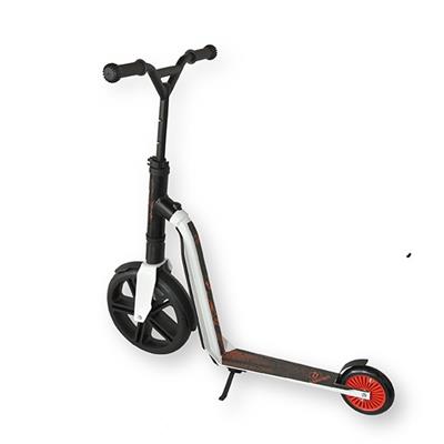 Этот самокат – логическое продолжение предыдущей модели, но переднее колесо здесь еще больше – диаметром 30 см. Это обеспечивает плавность хода самоката, рассчитанного на предельний вес 100 кг.